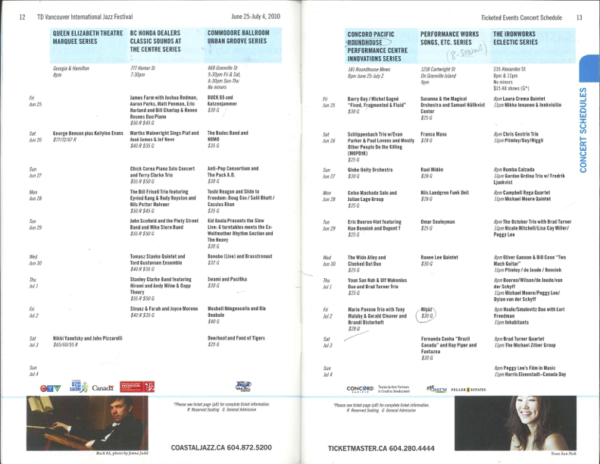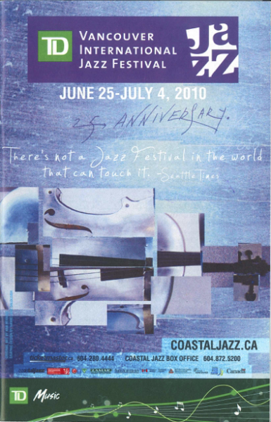 This week’s Flashback takes us to 2010 and another major milestone of the Vancouver International Jazz Festival – the 25th anniversary. In the opening pages of the program guide, Artistic Director Ken Pickering tried to explain how integral Coastal Jazz had felt to its legacy and connection to Vancouver.