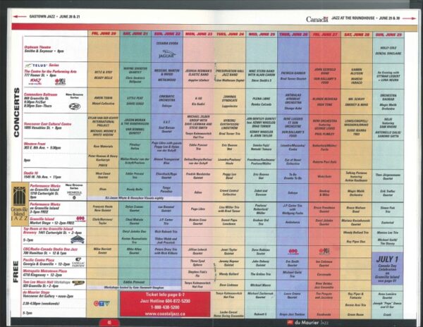 Once again the vast number of shows were organized by series – mainstream acts, well established names, emerging artists, international improvisers, blues, world and so on – and by venue. As Downbeat noted, “Mixing and matching avant-gardists in various ad hoc groups is a specialty,” of the Vancouver festival. Since its inception, the Festival created multiple-artist bills and fusing local musicians with artists from different parts of the world.