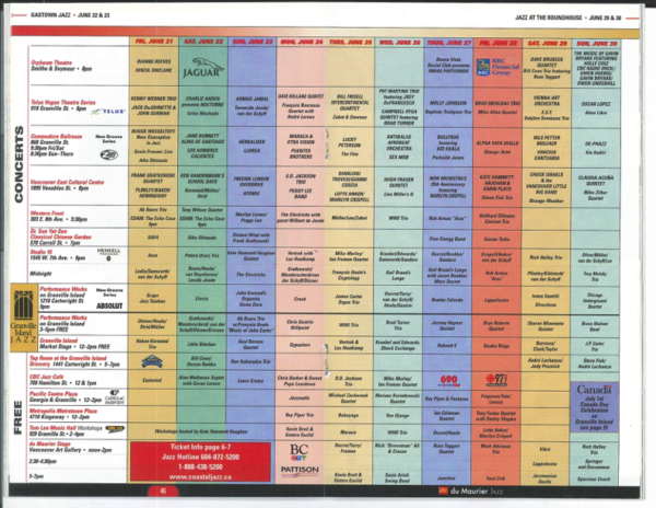 “One of the finest international music showcases in the world. For ten days, the Vancouver International Jazz Festival offers the sights and sounds of the music’s edge pushers, mainstayers and international ambassadors in a panoramic city sweep that keeps the focus on the music and the vitality of Canada’s West Coast urban cultural Mecca.” (Jazz Review)